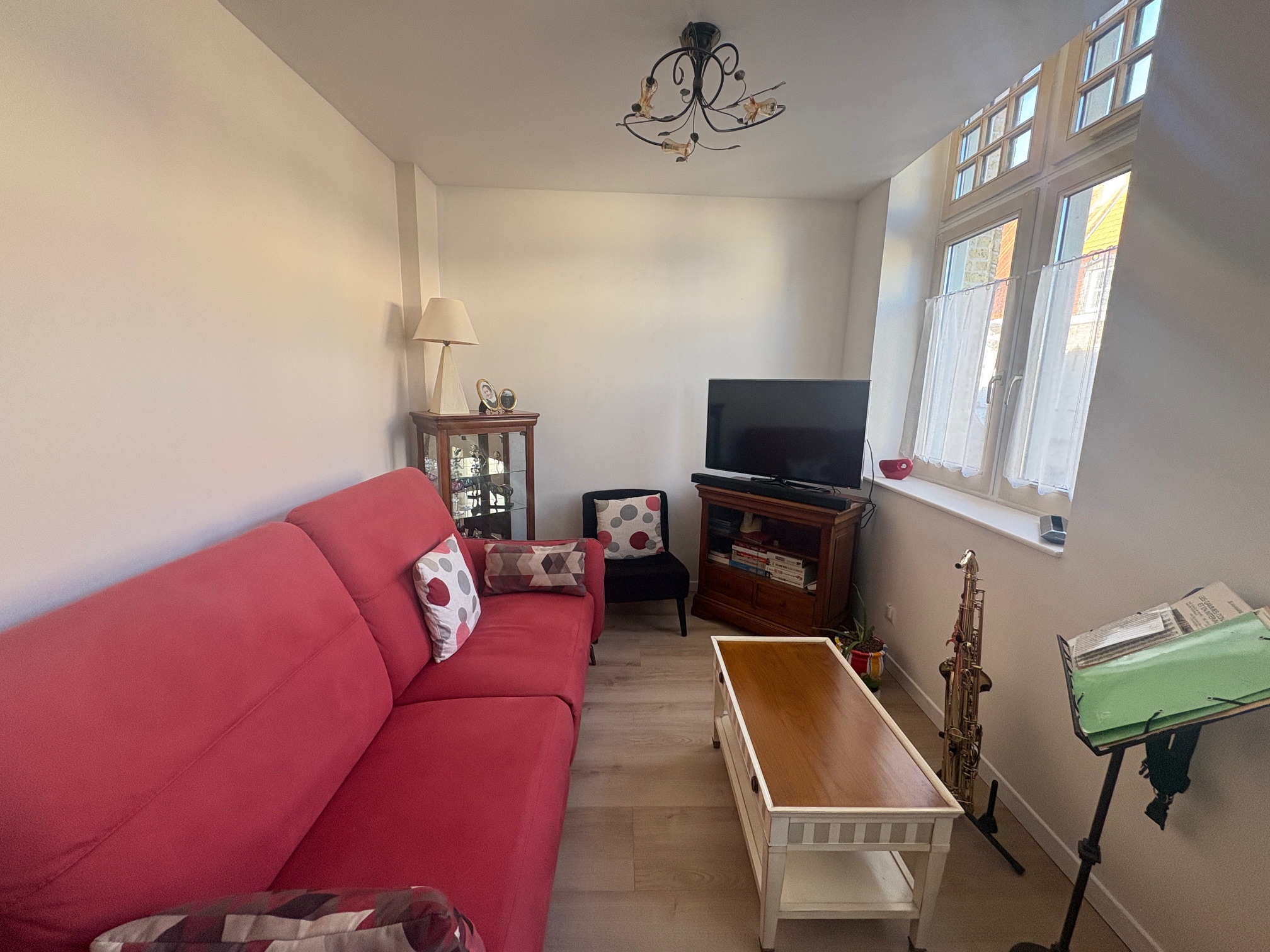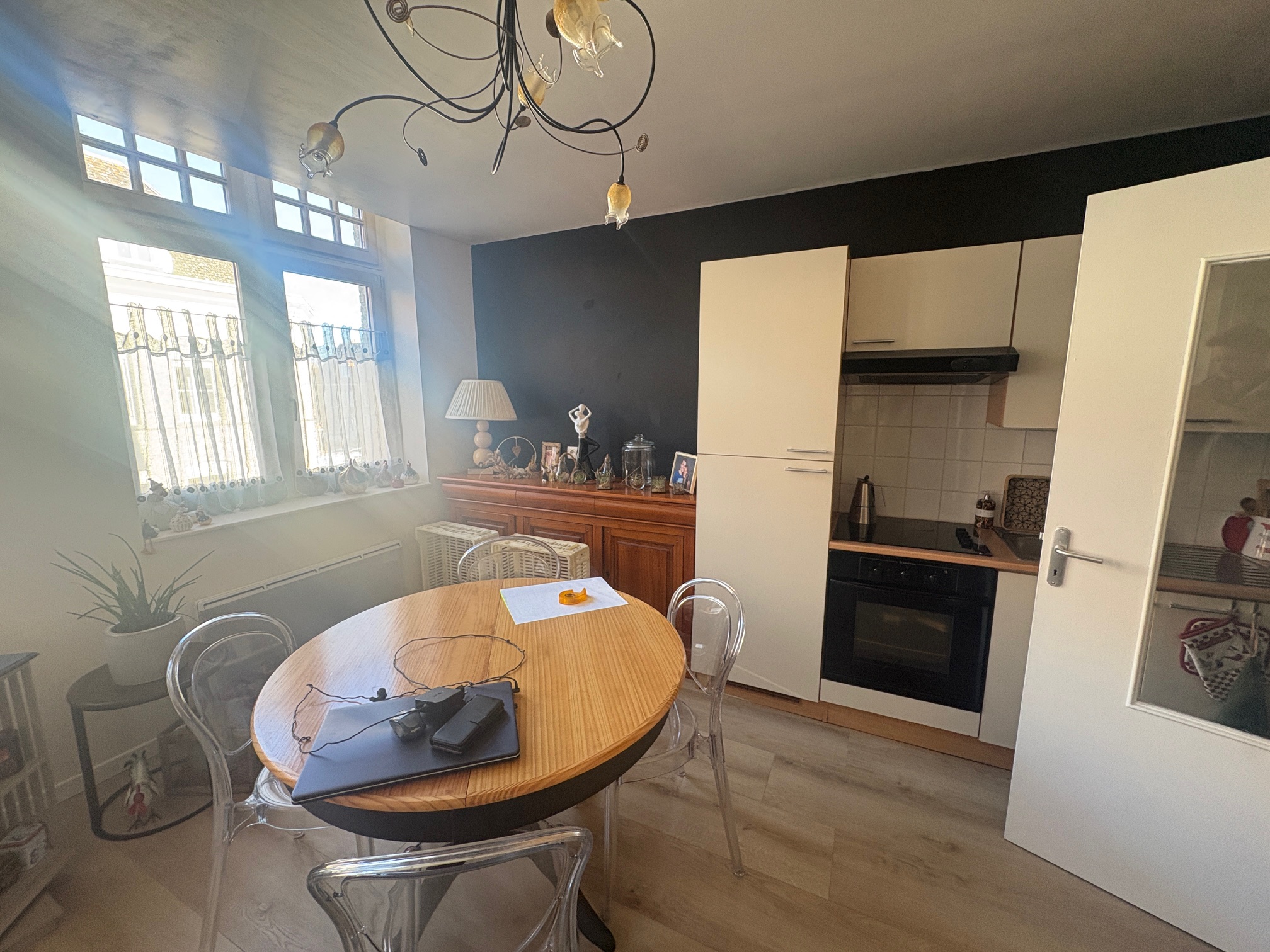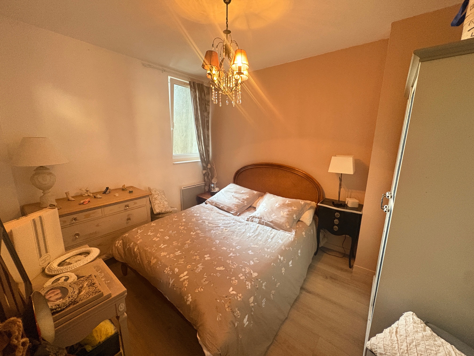 Offrant : Hall d’entrée, salon séjour ouvert sur cuisine aménagée équipée, WC, salle de bains, 1 chambre, C/C Electrique
