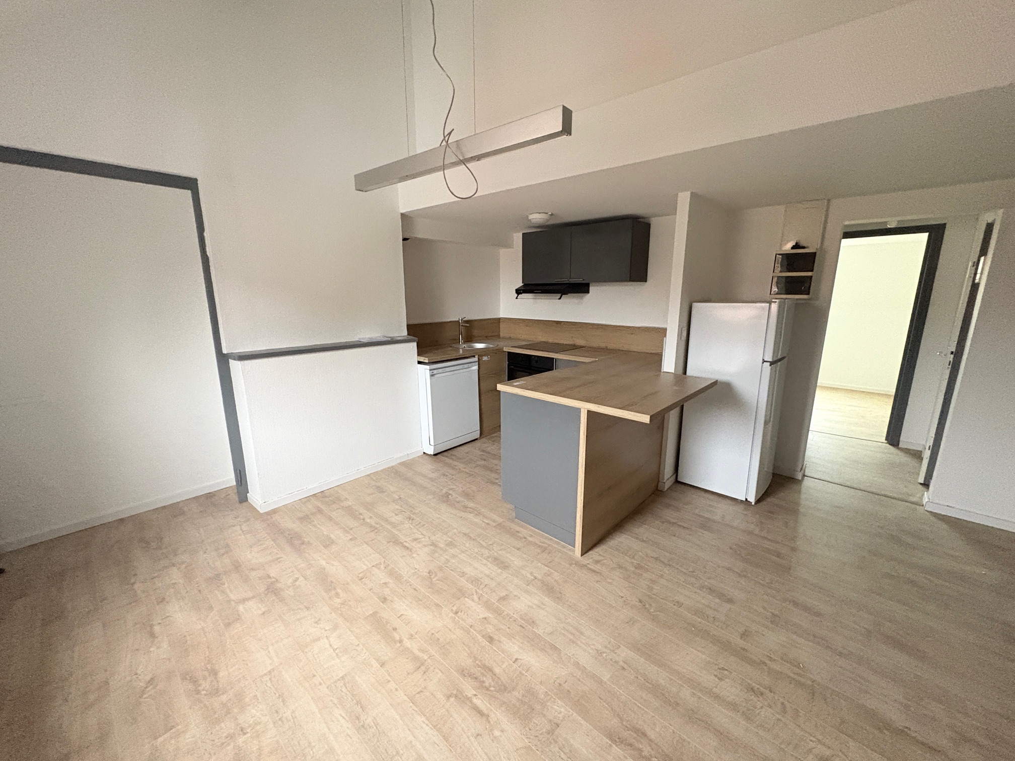 Offrant : Hall d’entrée, salon, séjour, cuisine aménagée équipée, 1 chambre, salle de douche, WC, chauffage electrique.