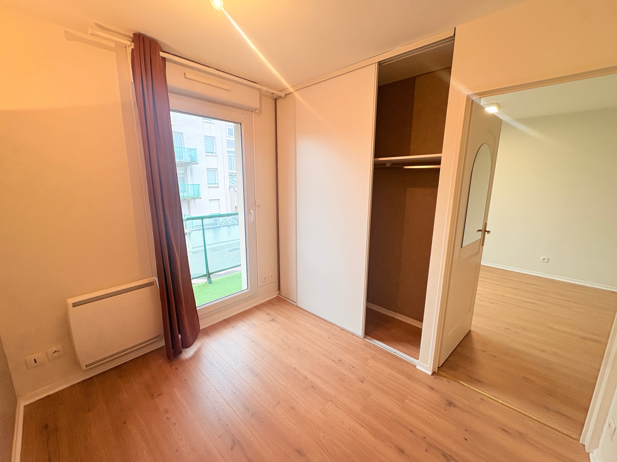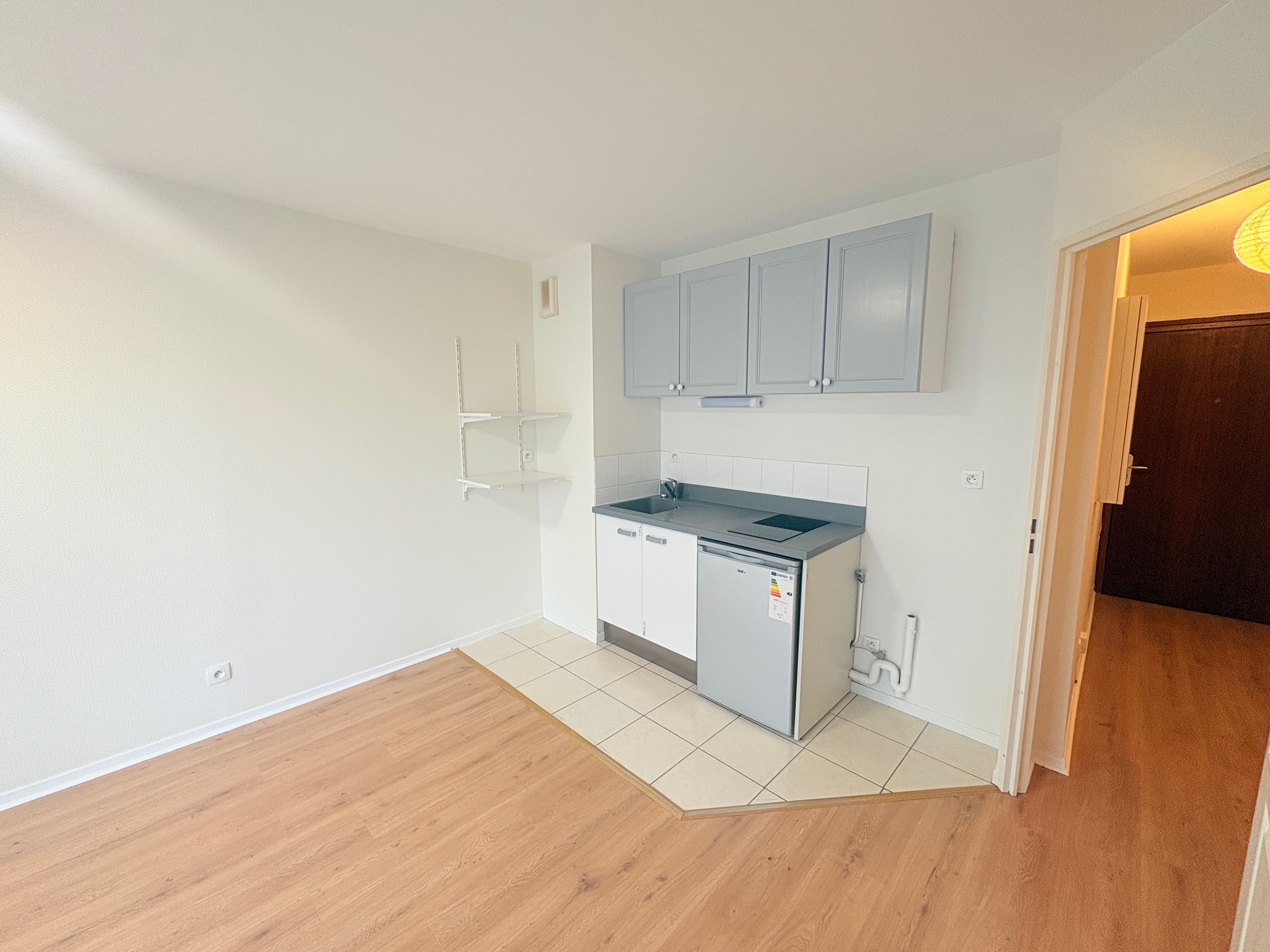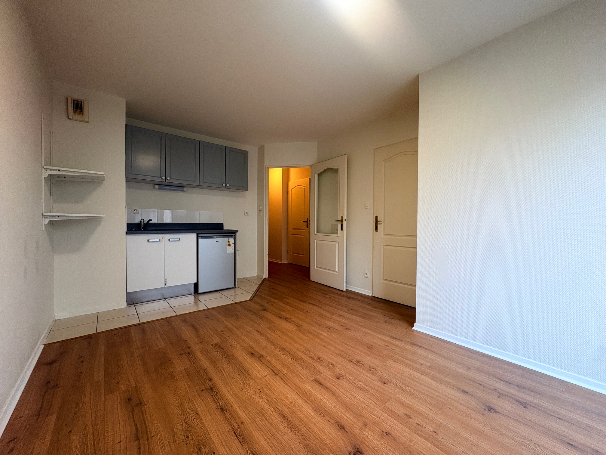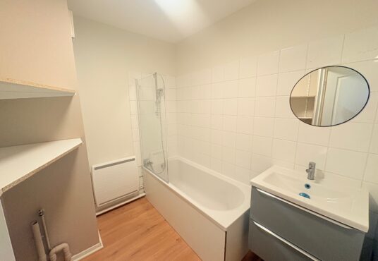 Offrant : Un hall d’entrée, kitchenette ouvert sur le salon séjour, balcon, 1 chambre avec placard, salle de bains avec baignoire, WC, C/C Electrique.